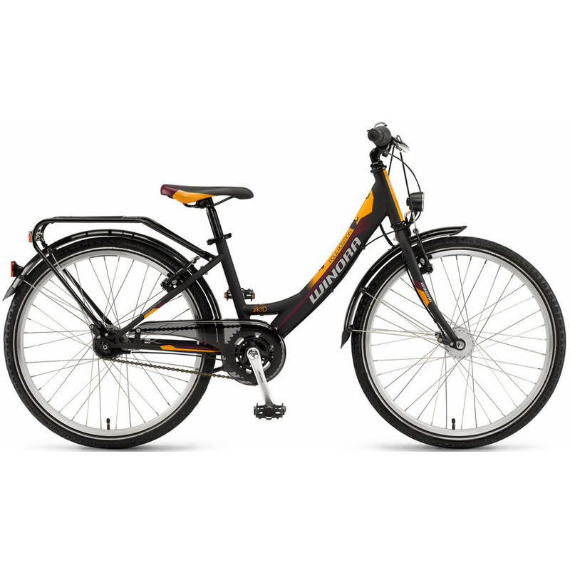 Das Pole Position ER 24" mit der sehr robusten und wartungsarmen 3- und 7-Gang Nexus Nabenschaltung, kommt in mutigen und trendigen Farben daher. Der selbstbewusste Schwarz-Ton und das frische, helle Orange machen das Design des Pole Position ER 24" 3- und 7-G Nexus nicht nur sportlich-elegant, sondern auch einzigartig. Der robuste Stahlrahmen verleiht dem Modell die nötige Zugfestigkeit und Lebensdauer. Alle Winora Modelle, so auch das Pole Position ER 24" 3- und 7-G Nexus, sind serienmäßig mit einem Shimano-Nabendynamo und in 2017 mit der sehr guten Beleuchtungsanlage von Trelock ausgestattet.